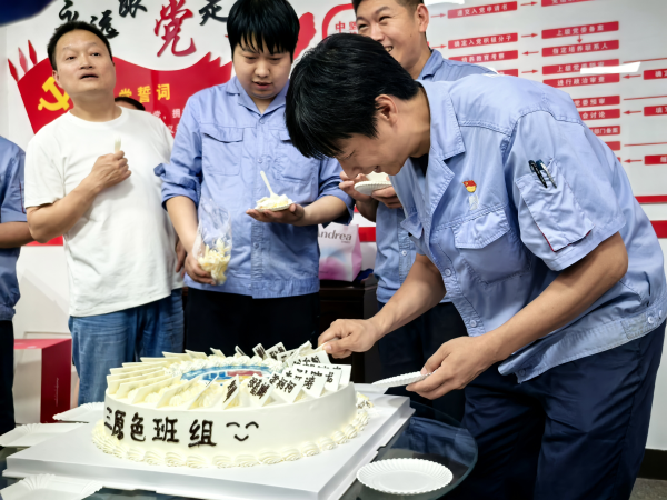 學(xué)習(xí)結(jié)束后,就進(jìn)入了第二個(gè)班組活動(dòng)——回顧往昔,慶祝“三原色”三歲生日。磨工班組的成員們齊聲喊出“磨工班組三歲啦!”,有人趕忙去拿蛋糕,有人忙著搬桌子,還有人拆蛋糕包裝。組員彭高和高強(qiáng)小心翼翼地拿著蛋糕轉(zhuǎn)來轉(zhuǎn)去,認(rèn)真找著合適的角度,想把這開心的一刻拍下來留作紀(jì)念。作為這個(gè)大家庭的一員,每個(gè)人都在用心為這場慶?;顒?dòng)出力,充分展現(xiàn)出團(tuán)隊(duì)的凝聚力 。